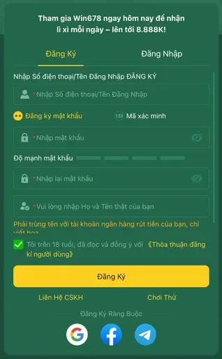 Đăng ký WIN678 ngay lập tứcđể nhận các ưu đãi độc quyền, tham gia sự kiện đặc biệt và khởi đầu hành trình giải trí đỉnh cao cùng WIN678.